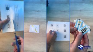 Imprimí el diseño con tinta de sublimación sobre papel especial para sublimar en modo espejo y recortalo.