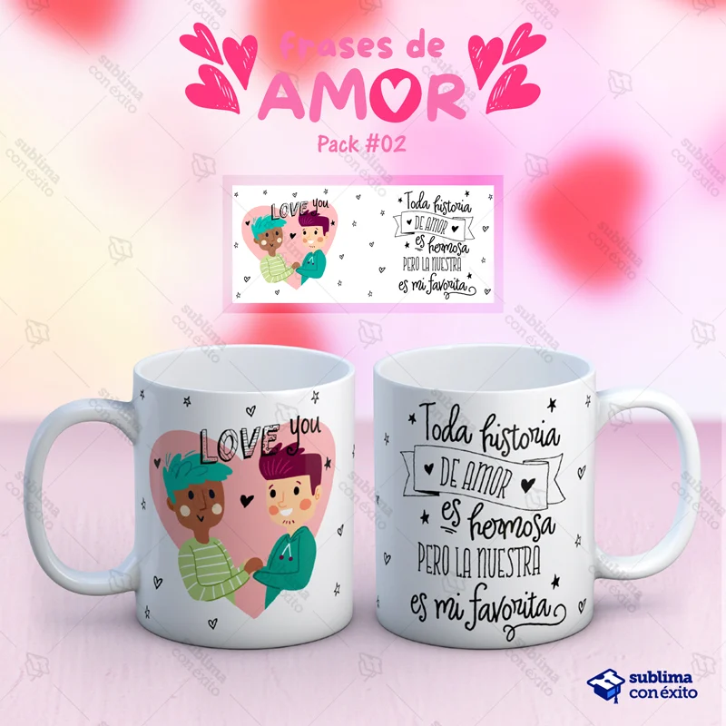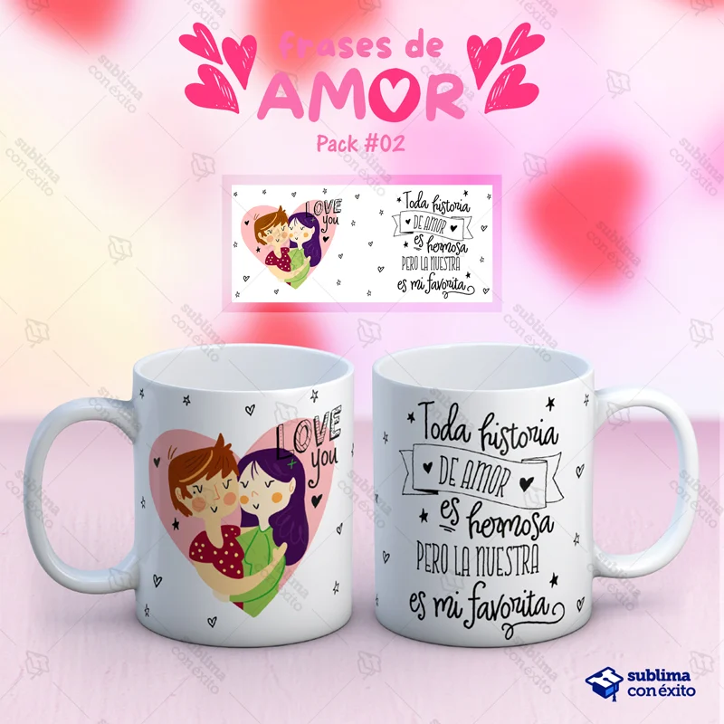 Pack de 10 diseños para tazas – Frases de amor Pack #02